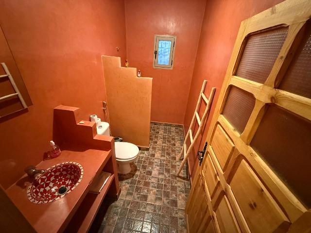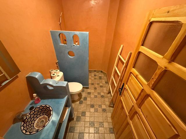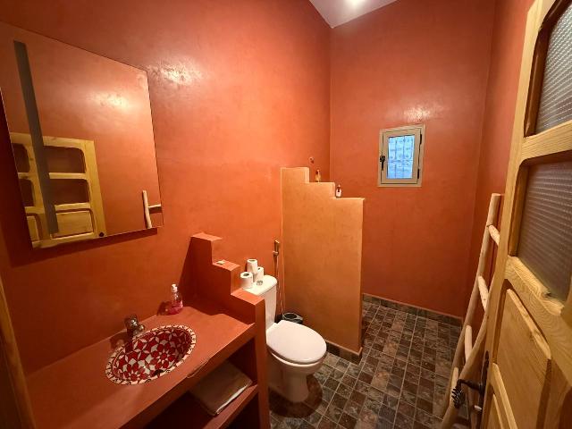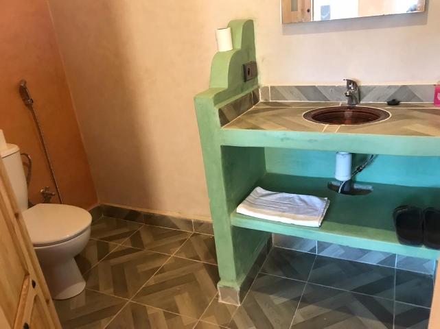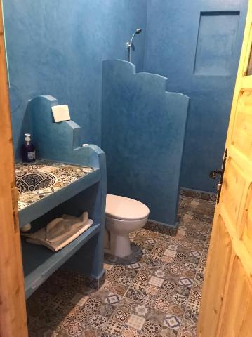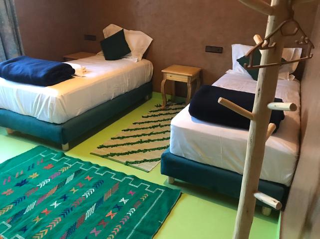 90 €Chambre Rouge Baignez dans l’atmosphère marocaine en séjournant dans la chambre triple “Roge ”. De ces moulures au plafond jusqu'à la mosaïque rouge de la salle de bain, tout rappelle l’atmosphère chaleureuse du Maroc. Les deux pièces construites en tadelakt et le système de climatisation permettent de bien isoler l’espace du chaud et du froid. Le lit double King Size et sa literie de qualité vous promettent de passer de bonnes nuits. La salle d’eau est une pièce adjacente équipée d’une douche, d’un lavabo