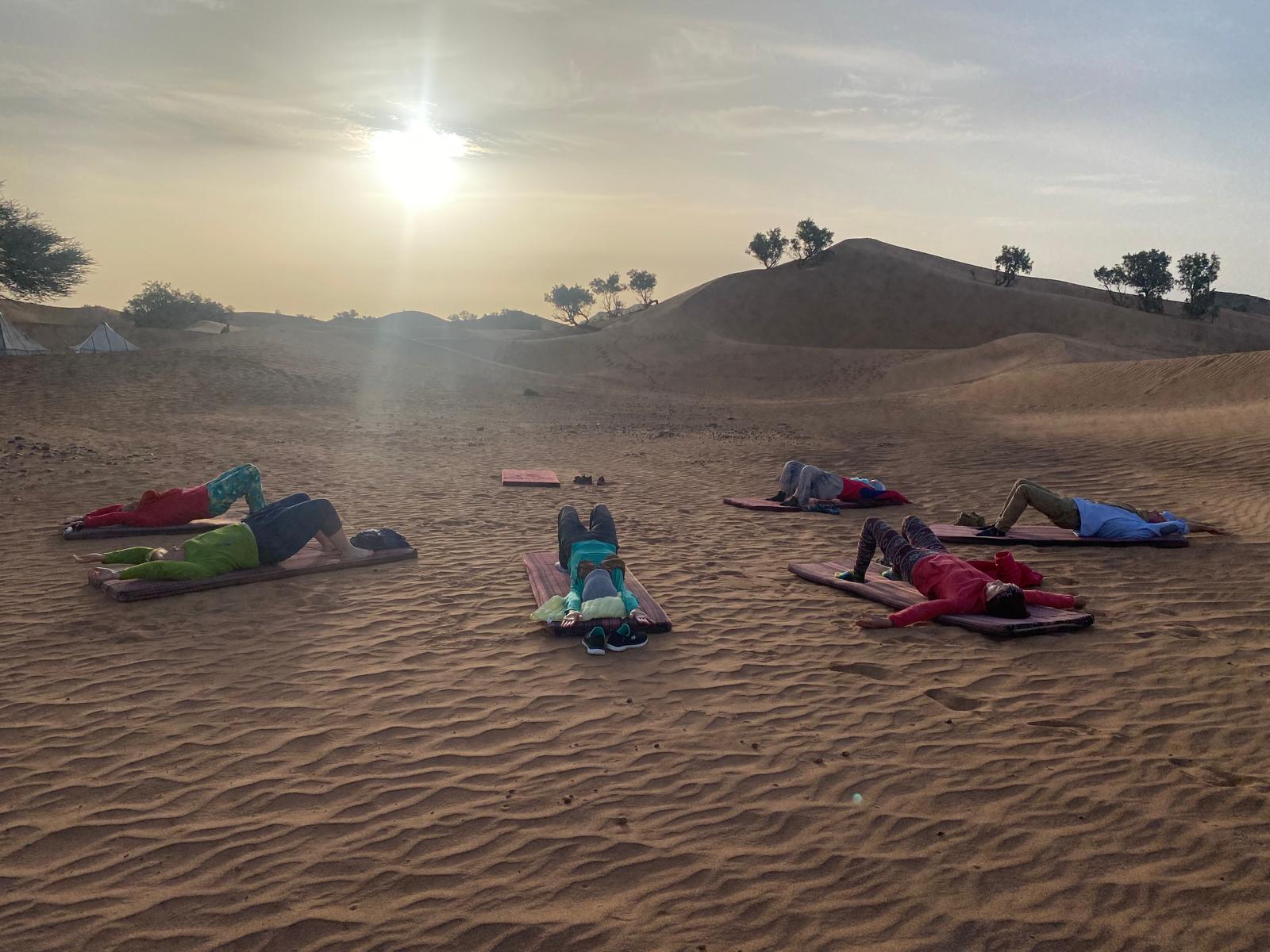 Notre Lodge offre un cadre idéal pour la pratique du yoga. Le calme et le silence du désert comme l’Erg Chegaga, au cœur des grandes dunes de sable, apporte une sérénité absolue. Les hôtes peuvent bénéficier de séances personnalisées par un professeur de yoga certifié. Chaque cours est adapté à la personne dans une pratique simple et complète : Pranayamas, Asanas, méditation… Pour une expérience qui apporte équilibre, paix intérieure et apaisement mental